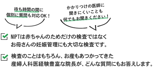 NIPTの検査で陽性判定となった場合、以下のフォロー体制を整えています。
