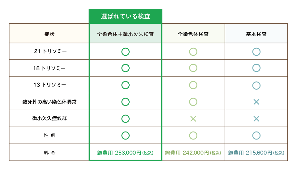 お産を扱ってきた産婦人科医としては、妊婦管理の一環として、また、出産時のサポート体制の考慮や妊婦さまのご不安やご希望が多様であることを踏まえ、検査の選択肢の一つとして全染色体検査をご案内しております。